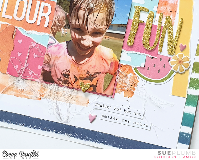 I've got a fun mixed media layout to share today that was created just for ME! If you have been around for a while you would already know that mid last year I took the plunge and subscribed to Hip Kit Club's monthly scrapbook kit. Unfortunately, not long after that I had to pack all my craft supplies away and move house, and I haven't really had a chance to play with my kits since. So it was high time that I crack one open and get some creating done! I chose the August kit, which was a bright, fun kit full of a mix of different brands. I chose to document a series of photos of myself after a visit to the hairdresser last year.